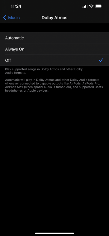This works! Thanks! iPhone 12 Pro Max in NA. Noticeable difference with Airpod Pro. Very cool! Different than say, using a pair of high quality IEMs, but I'm really liking it.I got it to show up on my iPhone 12 mini / iOS 14.6 just now by going into the Music settings and randomly toggling on and off things like "Automatic Downloads" and "Cellular Data." After doing that a few times, the settings for Atmos suddenly showed up.