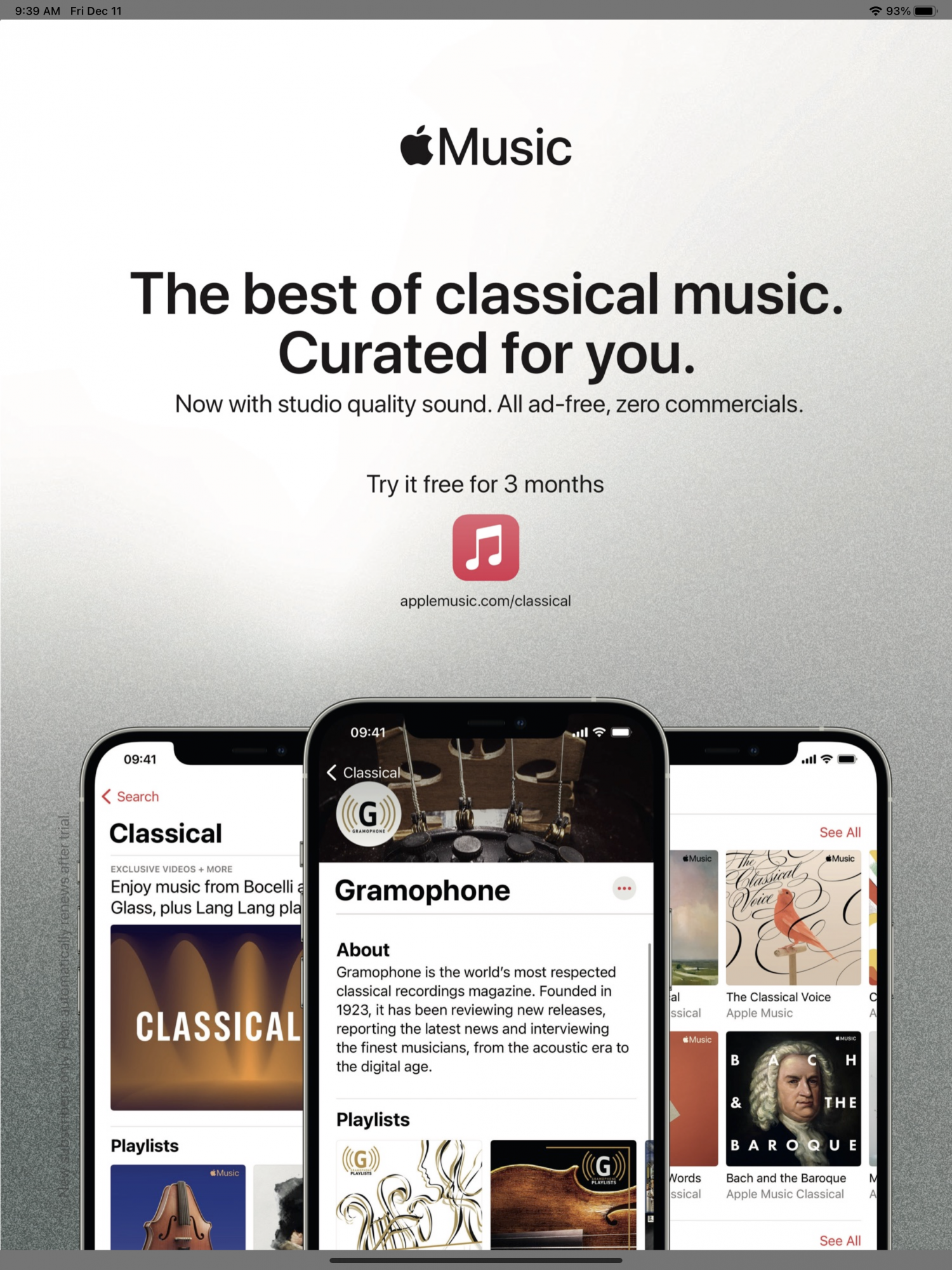 The attached advert is from a recent issue of Grammophone. What does “now with studio quality sound” mean? These adverts only started appearing a few months ago. I did not see any announcement from Apple of HiRes audio availability in Apple Music.That's great and all, but give us hi-def audio please.