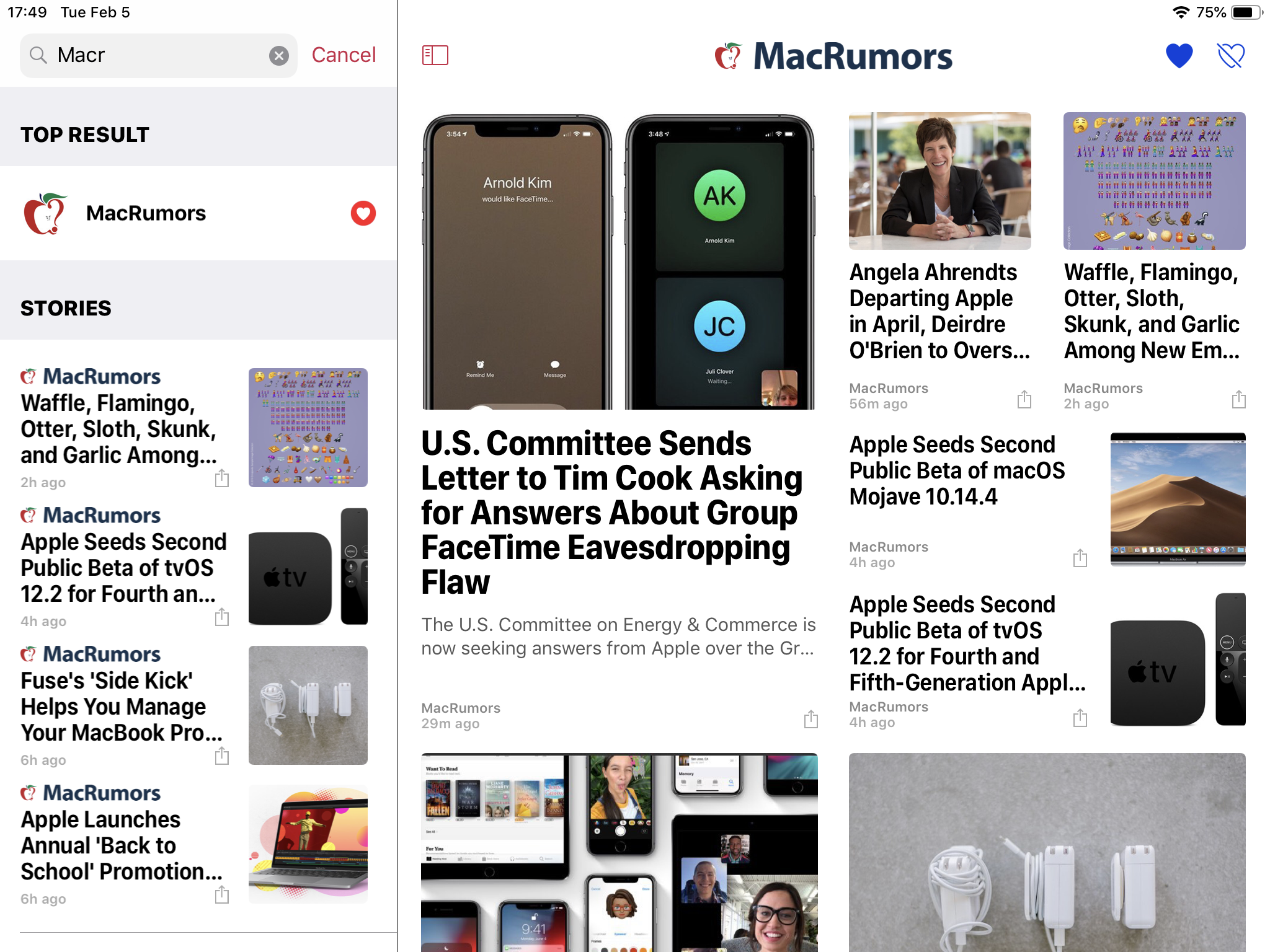 I have tried to to type MacRumors in Search and doesn’t show. Possible because my Apple News is shows only Canadian searches?Can you search for MacRumors in the left and tap the heart/favorite button?
