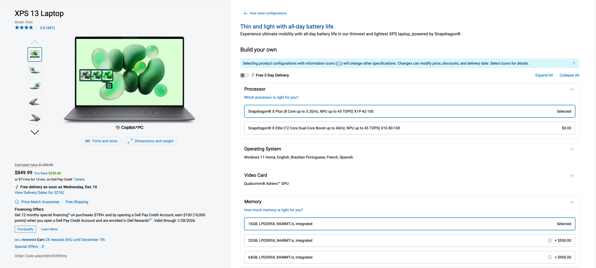 I searched Thursday and noticed the Dell XPS silver or dell gray 14" was under $900 with 16GB/526SSD and LED display. intel 7 I think, or 5-I didn't look at all the options, including RAM and SSD. I just wonder, without going through all the research, about which one of the two is more expensive if both were to have the same size RAM and SSD?