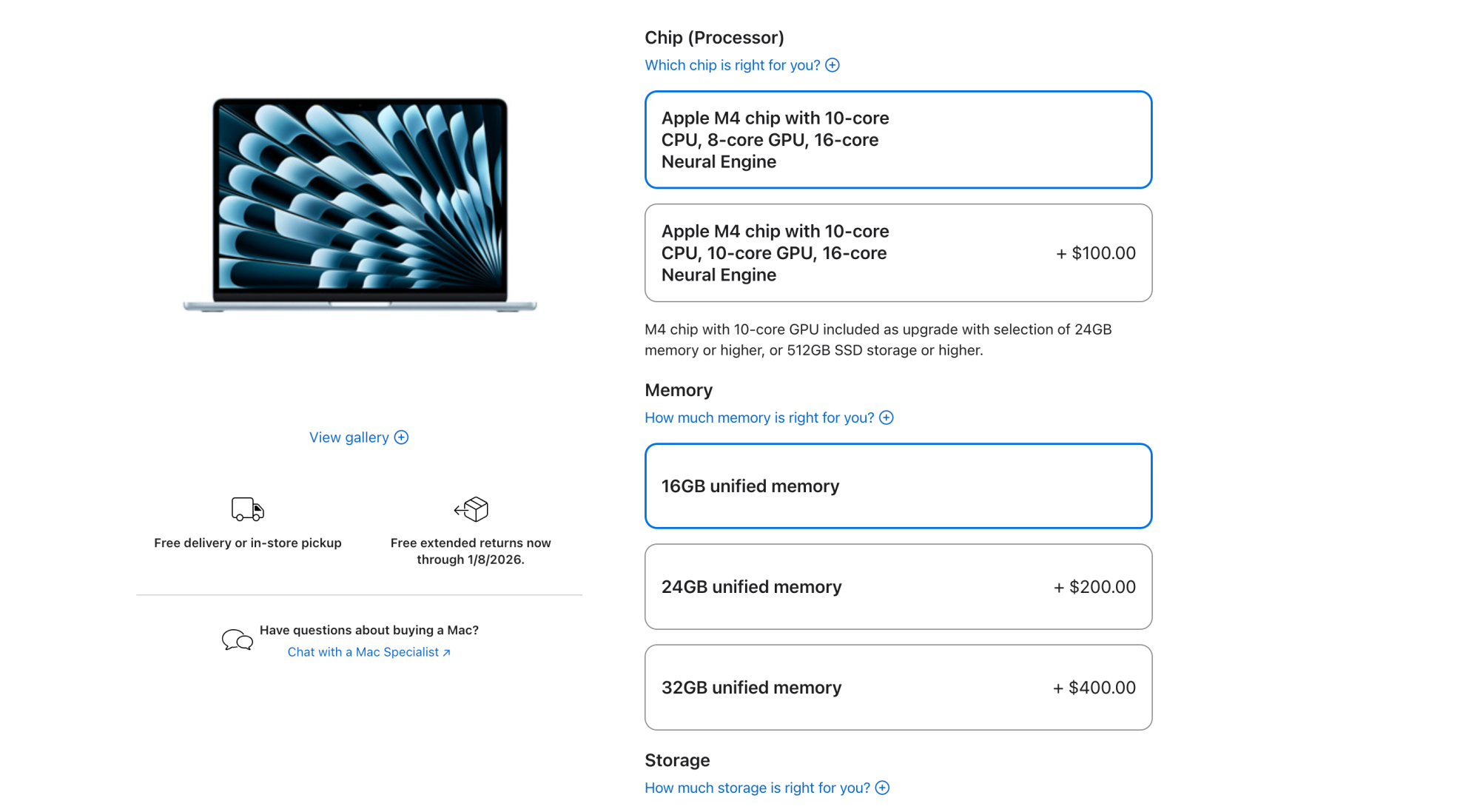 Apple pricing tends to entail a LOT of inertia - resistance to change. Usually that means staying expensive as the larger market cheapens, but lately A.I.-related demand for resource has driven up the prices of RAM and SSDs, from what I understand, so for once Apple's pricing rigidity may keep prices down a bit instead of up.