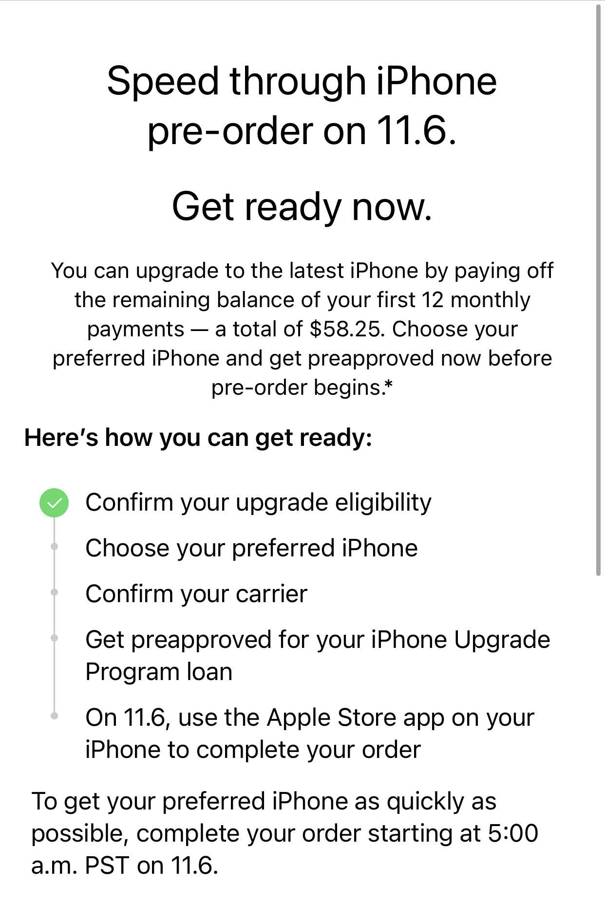 They told me that you can only pre-approve phone with Apple Card and not with carrier installment plans. So we have to wait until 6th
