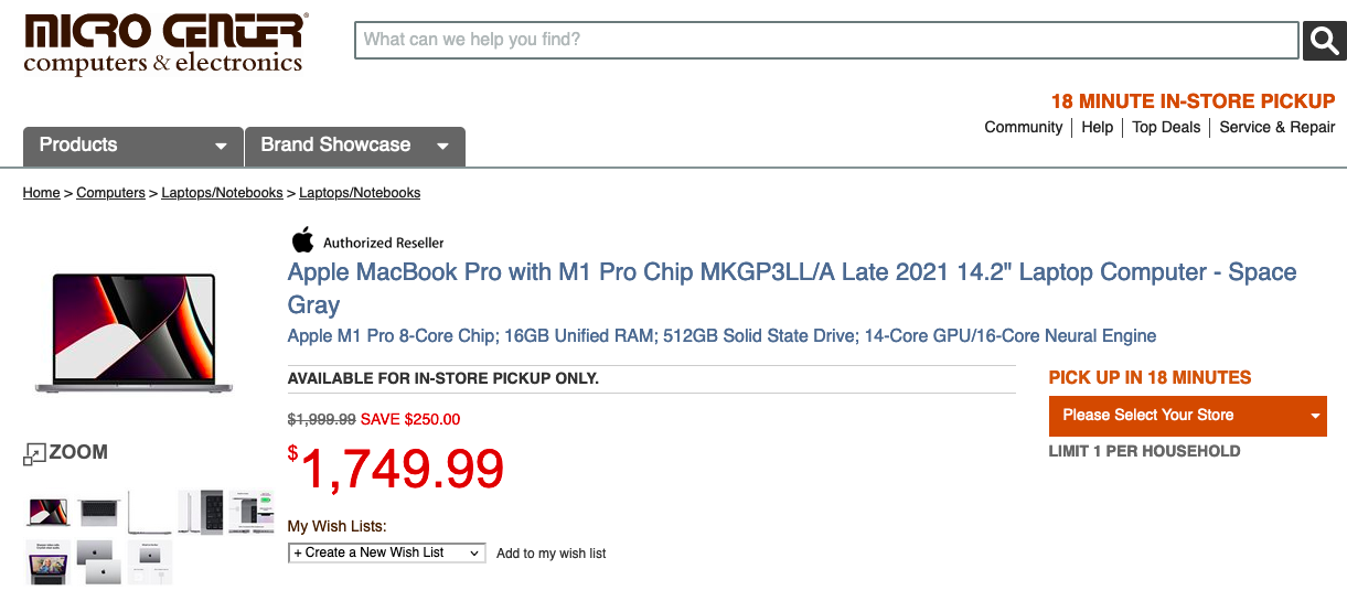 Retailers like B&H Photo carry nearly twice the number of MBP 14-inch SKUs vs. 16-inch.