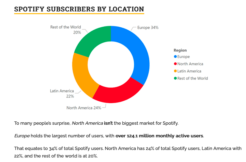 That’s “34% of Spotify users are in Europe”, not “Spotify users are 34% of Europeans”.