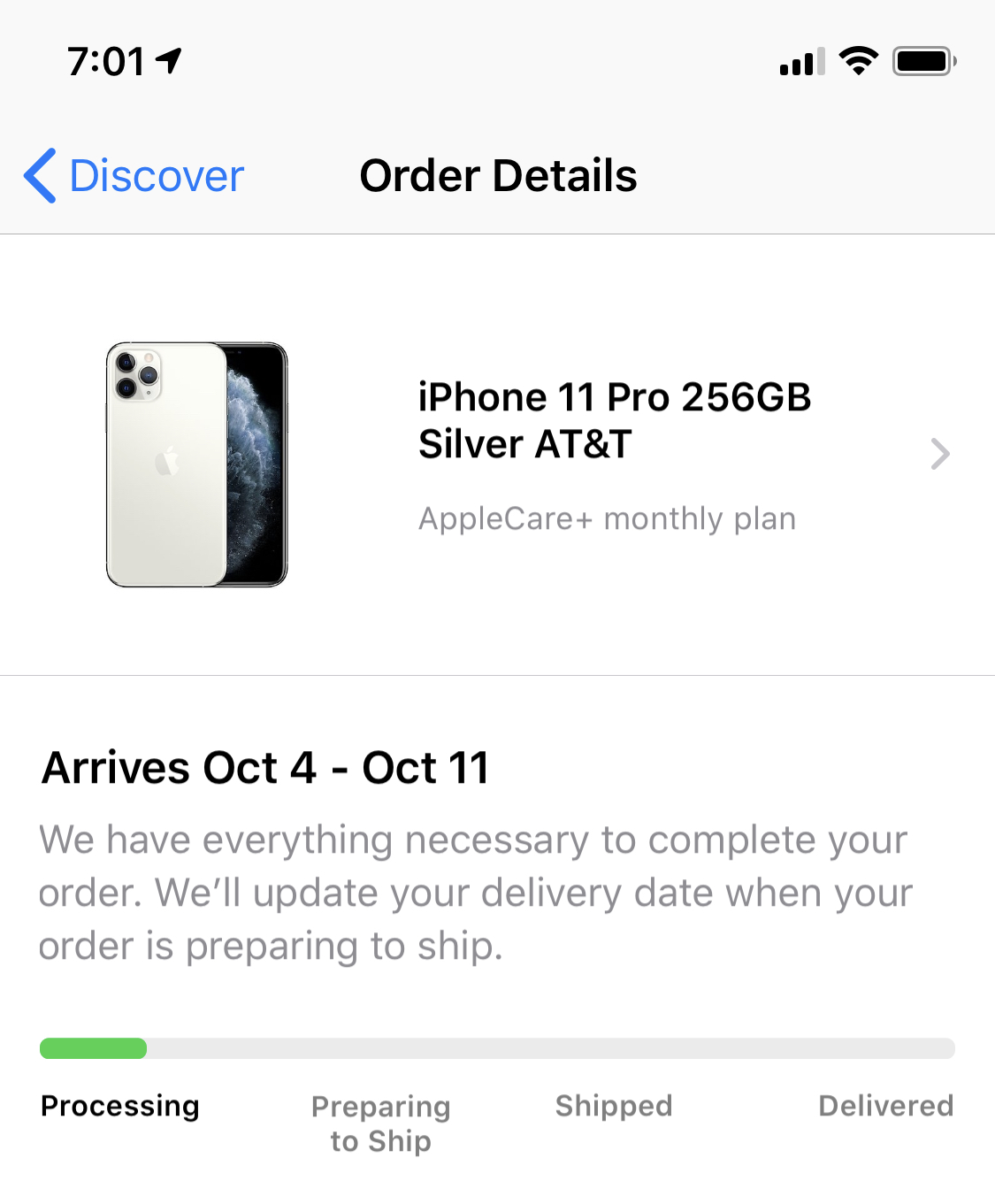 On 9/27 - 10/1 group shipped arriving 9/26. Got my AppleCare certificate thinking phone is near Maybe 9/23