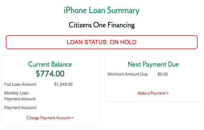That is odd. Thank you for the explanation and that’s how I thought it worked. But upon checking my Citizen One loan account, I do have a On Hold status on my loan. But yet I was charged a payment on 09/21, which happens to be the same exact day I got charged for my new loan for iPhone 11 Pro. Never happened in previous years so I don’t know what to think.The way it is supposed to work @PatrickBoland and @jaziCo