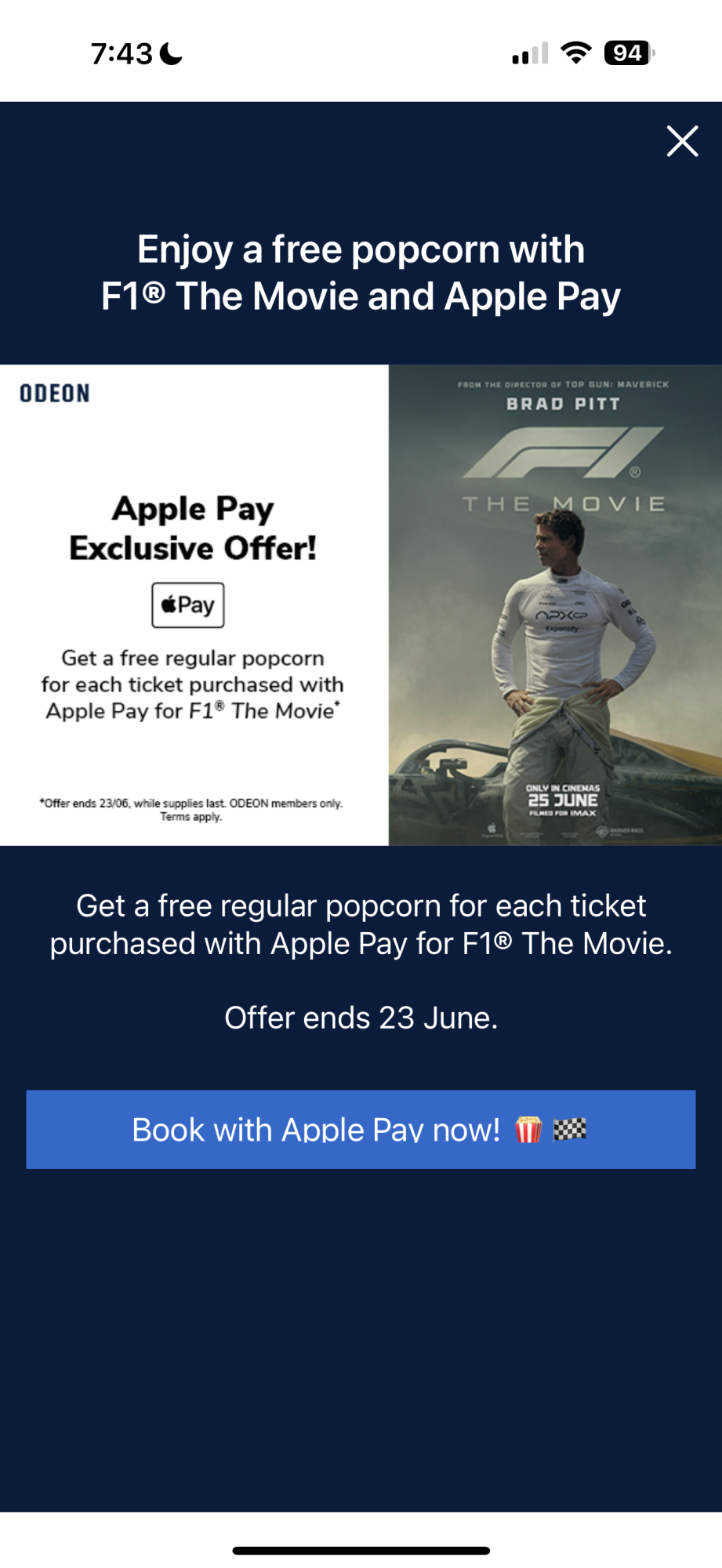 Article Link: Apple Partners With Fandango For 'F1: The Movie' Ticket Discount
