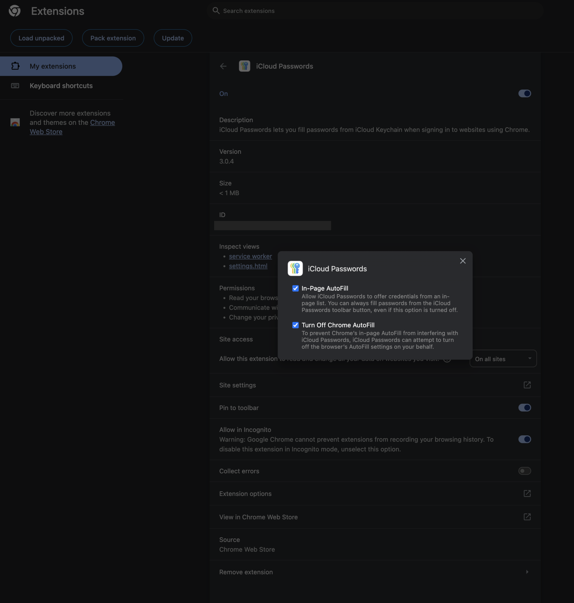 This is a brand new Chrome installation with the latest version of Chrome and the Apple Password extension, my version of Chrome is 131.0.6778.140 not 131.1 as yours though.