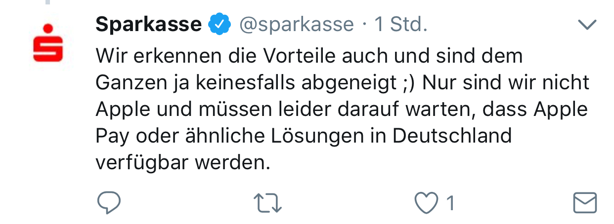 Google Pay to launch at the end of the month... Nothing about Apple Pay, apart from the Sparkasse saying that "Apple needs to give us access to the NFC chip" which will surely never happen.