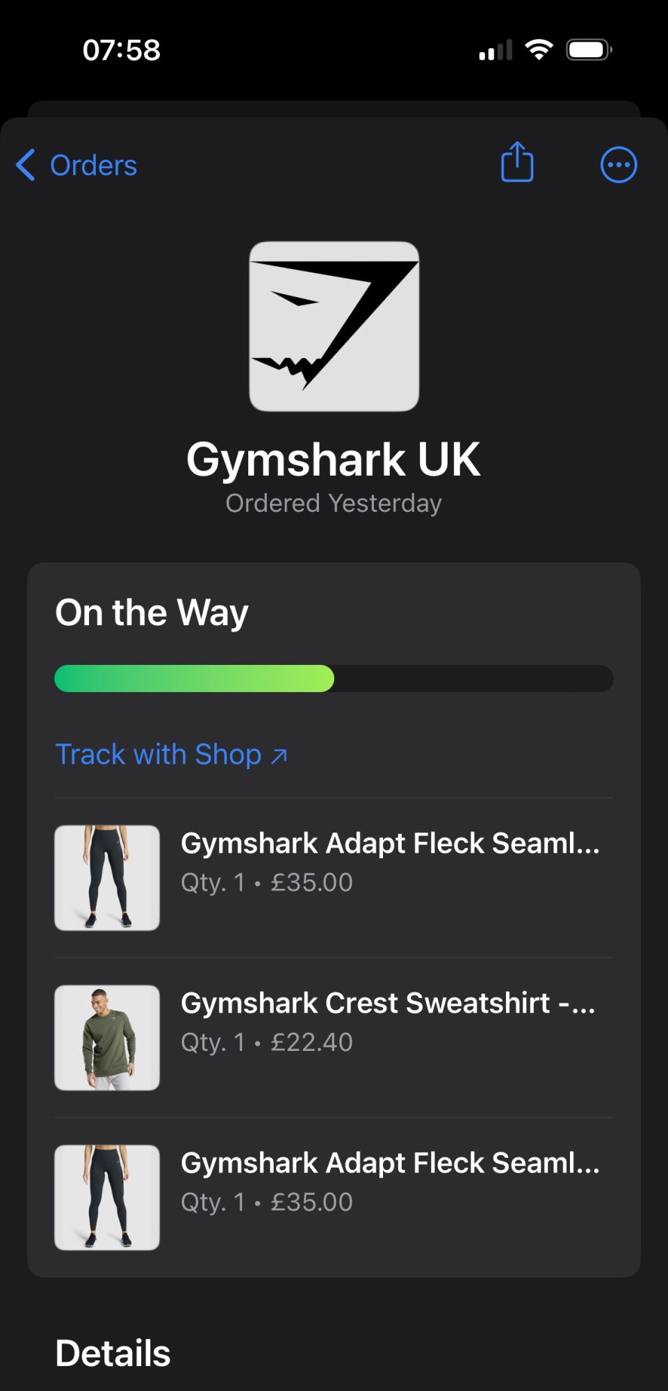 My Nomad Titanium AW bracelet tracked via Megamac as well. Seems to only work with Shopify at the moment.First order tracking through Wallet after paying with Apple Pay at uk.gymshark.com