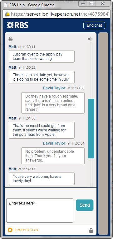 I'd imagine it would be frustrating for that team at the moment as if they are "ready to go" as with what Mastercard claim and they just need the green light they will be doing not much work at the moment as I bet they would have been told to have everything ready for the 1st at 8am or something by their management incase Apple said go live.^^^^^^^^