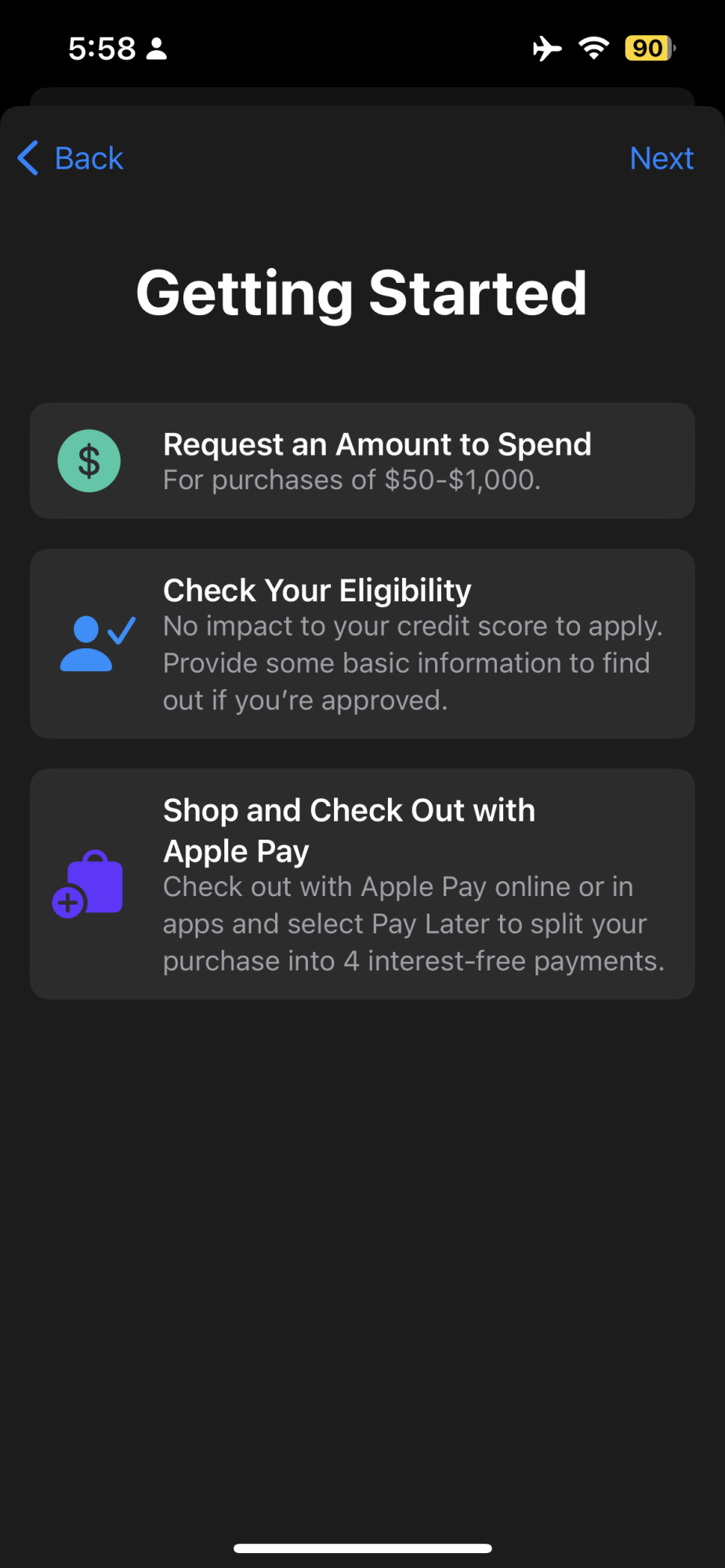 iPhone users can apply for a $50 to $1,000 loan in the Wallet app with no impact to their credit, according to Apple. After entering the amount they would like to borrow and agreeing to the Apple Pay Later terms, a soft credit check will be initiated. Once a user is approved, Apple Pay Later will be available as an option when using Apple Pay.