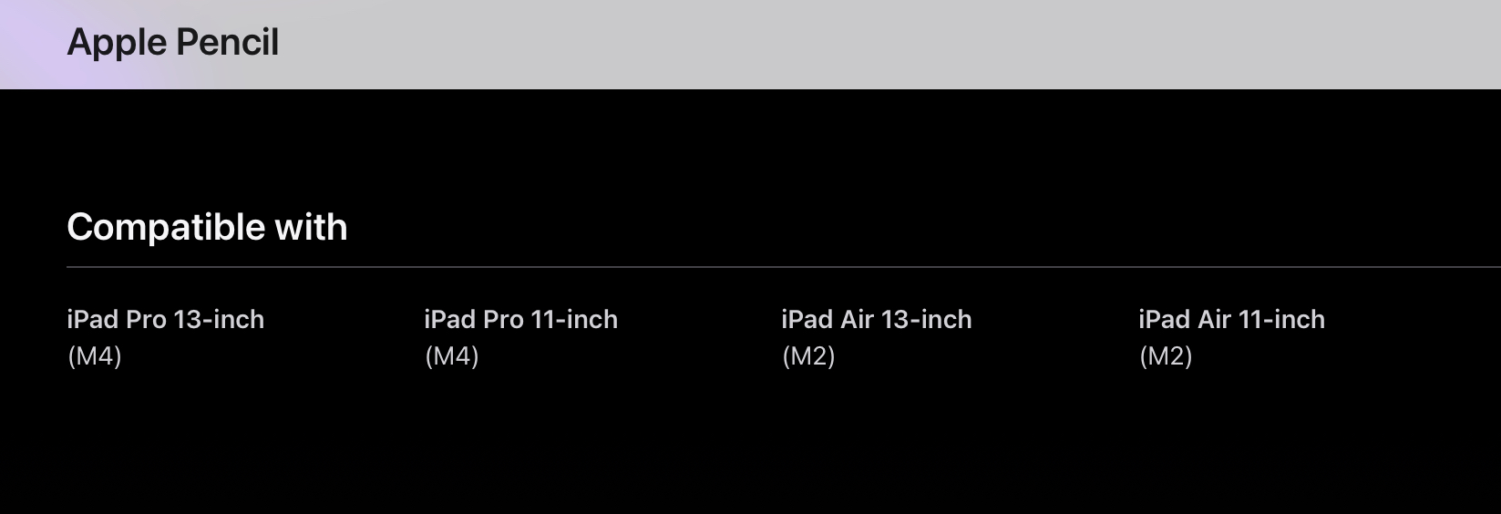 Apple Pencil Pro pairs, charges, and is stored on the side of the newly-announced iPad Pro and iPad Air models, which feature a new magnetic interface. It is not compatible with any other iPad models.