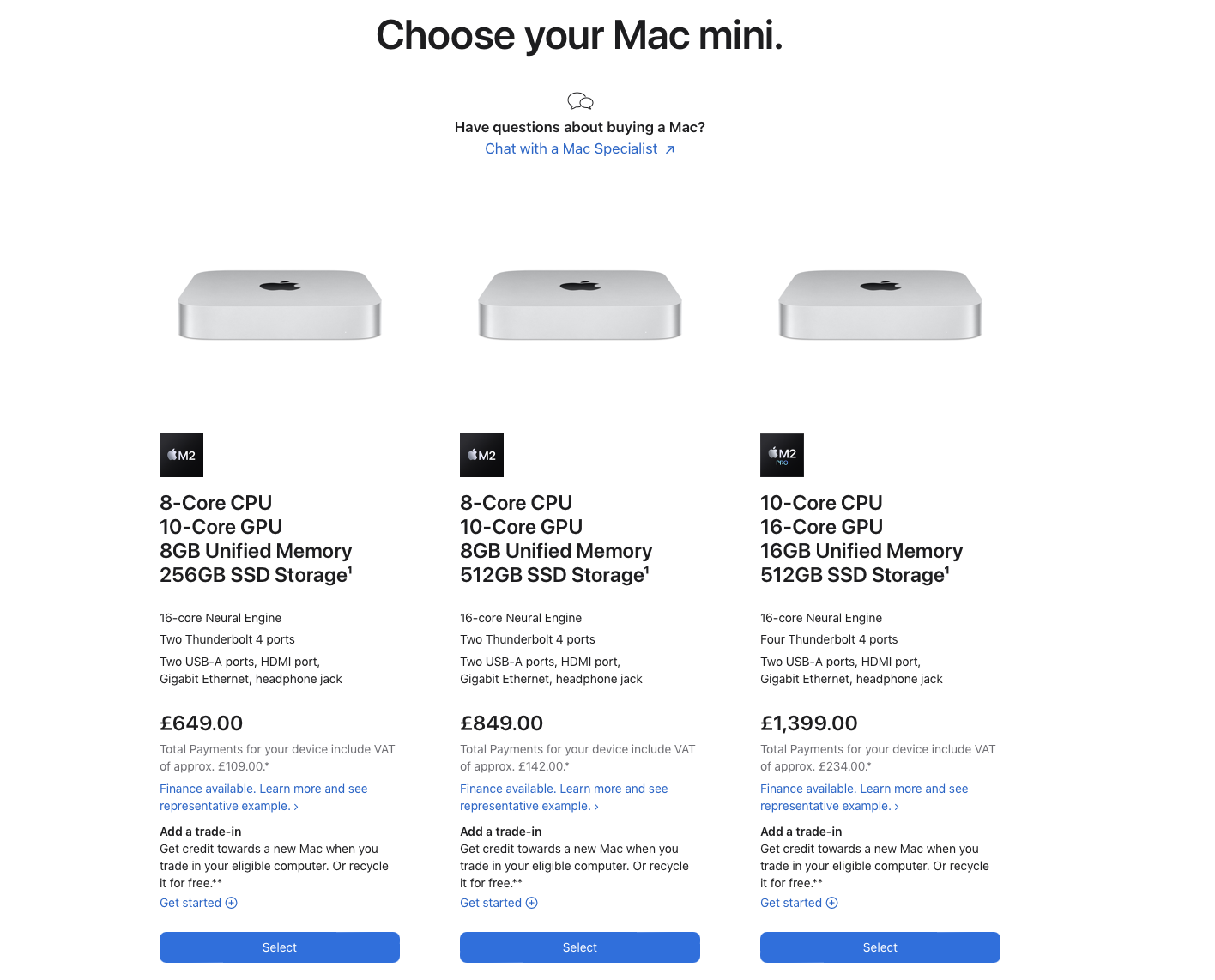M4 Pro Mini vs. M2 Pro Mini, higher-end Pro chip: Same price.
