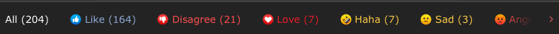 These statistics don't support your argument, for at least a couple of reasons:So below are the current numbers for reactions to this very legitimate comment. 10% of these reactions are people who do not get this comment. So what that means is that the modern standard of only accepting those who express perfect virtue and silencing people with edgy senses of humor is being driven by 10%. Why would we think it is good that Apple fired a guy because he told a joke that a vast majority of people think is perfectly fine? Are we seriously wanting to live in a world where the most easily offended minority of people get to set the standards? Because that is where we are. The most easily offended people you can possibly find, who are a vast minority of people, are trying to force the majority of people from saying all of the things that the vast majority of people say or think all of the time. This is dumb. Apple fired him, good for Apple. I guess you aren't allowed to work there if you express a sense of humor while off the clock that 10% of people do not appreciate. That sounds like a crappy place to work.
