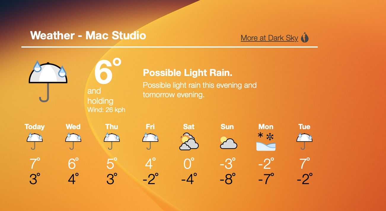 Dark Sky isn't glanceable either. It actually shows less information than Apple Weather and requires MORE scrolling.Apple’s weather app is one of the worst user interfaces imaginable. Information should be attainable at a glance - open the app, have readily quick access to everything at a glance. It’s not even close, it draws your eyes all over the place, you have to scroll, click, transition between tabs and windows to get a clear understanding of all the necessities of weather.