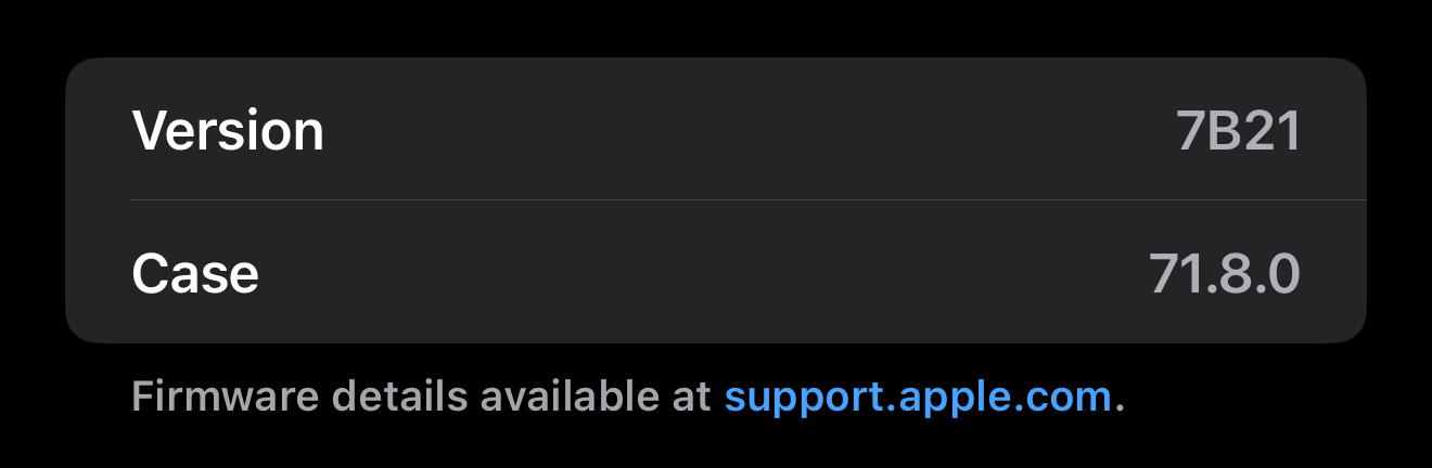 I don’t think that’s quite right—my AirPods Pro 2 (lightning) updated to 7B21 yesterday and then today the case updated from 70.92.0 to 71.8.0.Yes, 7B21 is the latest overall firmware, but the specific "Case Version" used to be 71.8.0 under 7B19 and now it is 70.92.0, seemingly a downgrade in numbers.