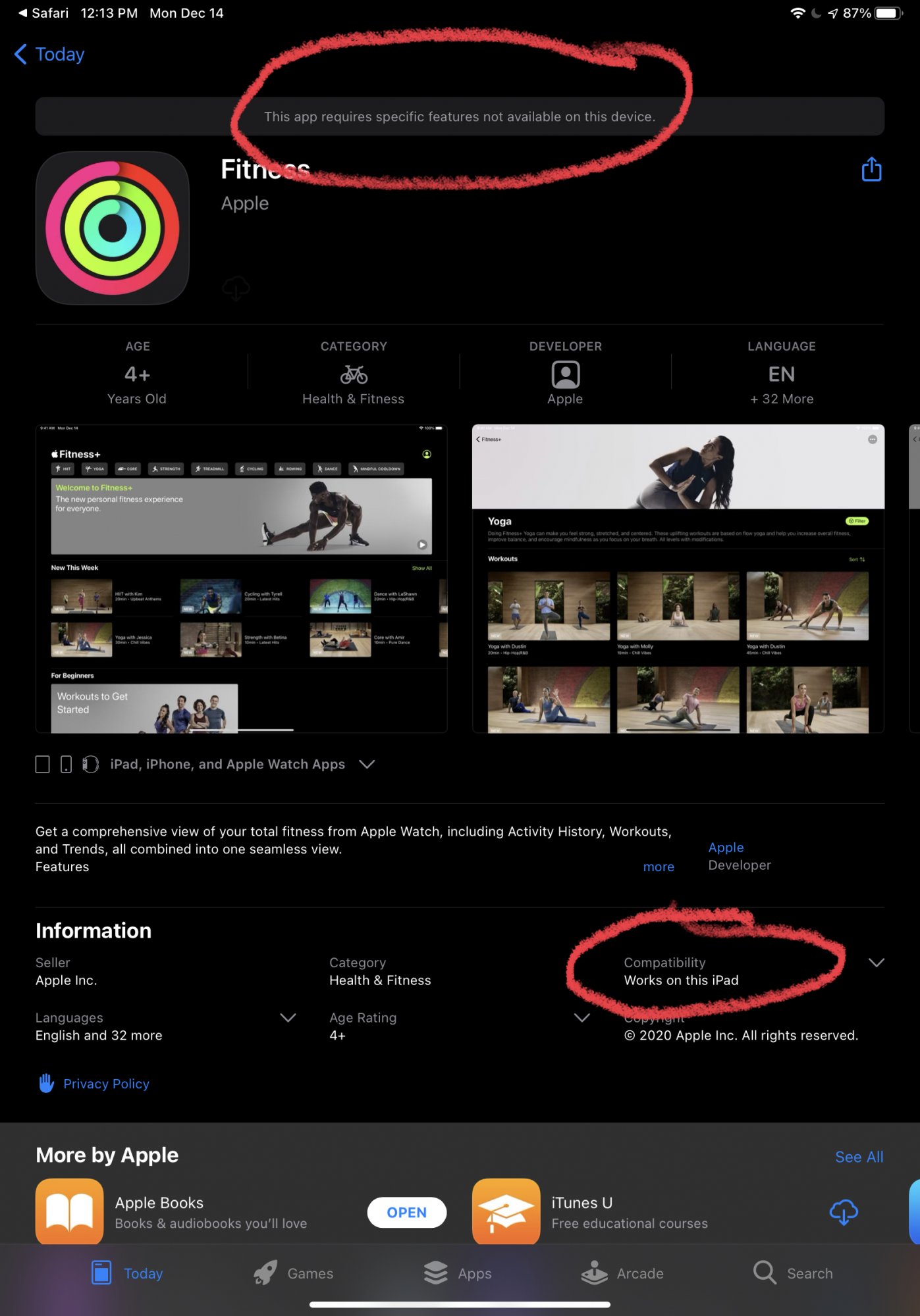 As previously stated multiple times in this thread it’s not there yet. Even when using the link on Apples site everyone is getting an incompatible message. So clearly apple has some work(outs) to do themselves. Albeit a different kind.Seriously, where is the Fitness app on the iPad? I’m only seeing it on my watch and AppleTV.