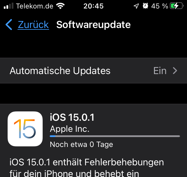 Apple today released iOS 15.0.1, which is the first official update to the iOS 15 operating system that was released in September. iOS 15.0.1 comes two weeks after the launch of iOS 15, and it is a bug fix update.