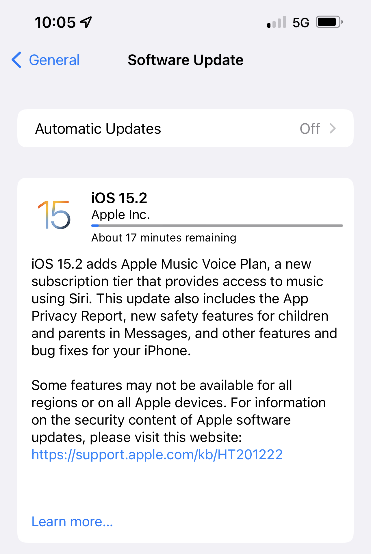 For a complete overview of all of the features that are available in iOS 15, we have a dedicated iOS 15 roundup.iOS 15.2 adds Apple Music Voice Plan, a new subscription tier that provides access to music using Siri. This update also includes the App Privacy Report, new safety features for children and parents in Messages, and other features and bug fixes for your iPhone.