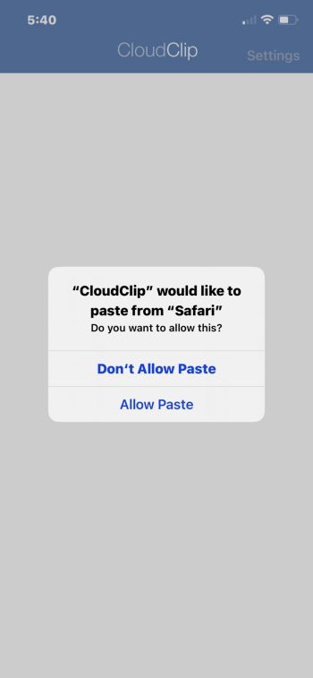 When you give permission does it ask again when you try to copy from safari. I've tried copying and pasting from safari and it's not asking again after i confirm once.I can confirm that the burdensome/annoying permission to paste glitch still effects CloudClip - have reported that - OS has to make it possible via an option/setting to AT LEAST set pasting as ok in each app, maybe system wide but that’s a security black hole. It MIGHT have something to fo with adding data to icloud?