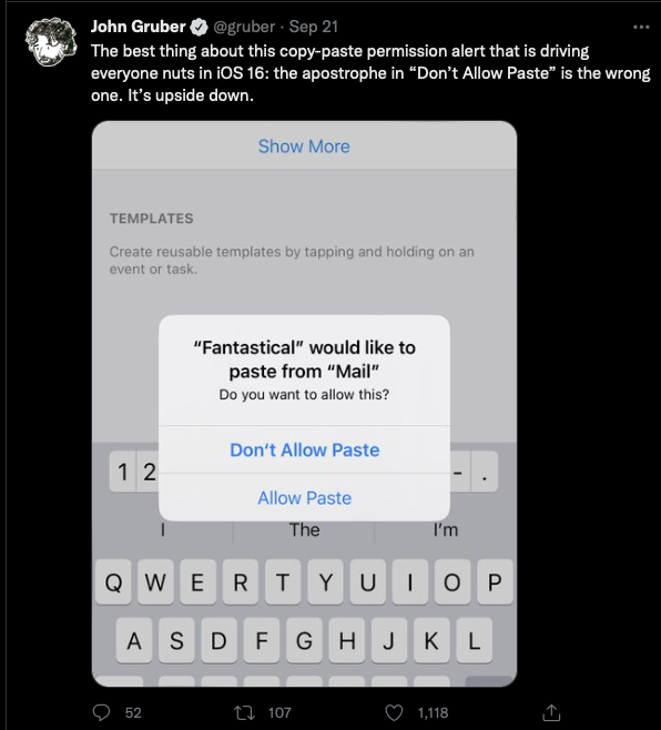 As for the copy and paste bug, Apple confirmed that it was not normal behavior last week. Apps are not supposed to ask for permission to access the clipboard with every single paste attempt, and the issue has already been addressed in the iOS 16.1 beta.