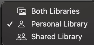 We have decided to go back to personal libraries because it's so confusing - we don't know whose photo is whose when it was all in shared.