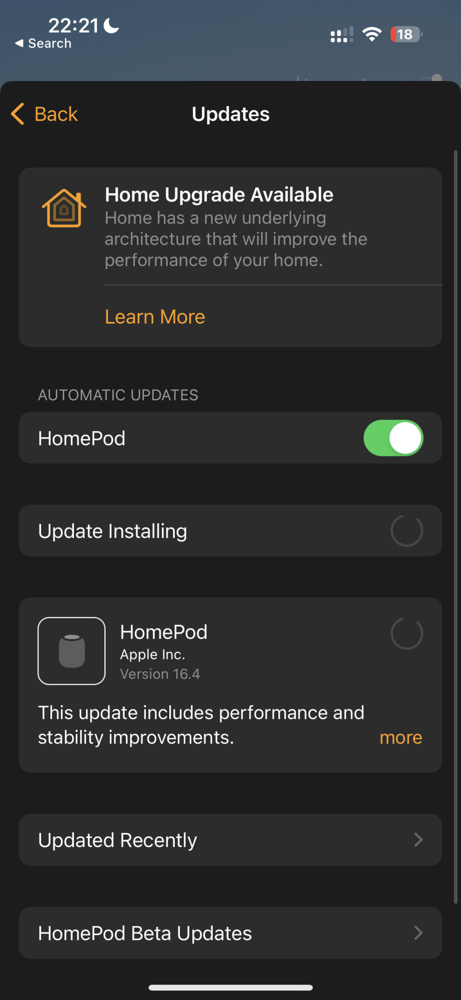 Interesting, that would make sense. The reason why I was confused is that with 16.2 it was a separate update in the Settings section of the Home app but it looks like they fixed it with the iOS release itself this time.That's 16.4