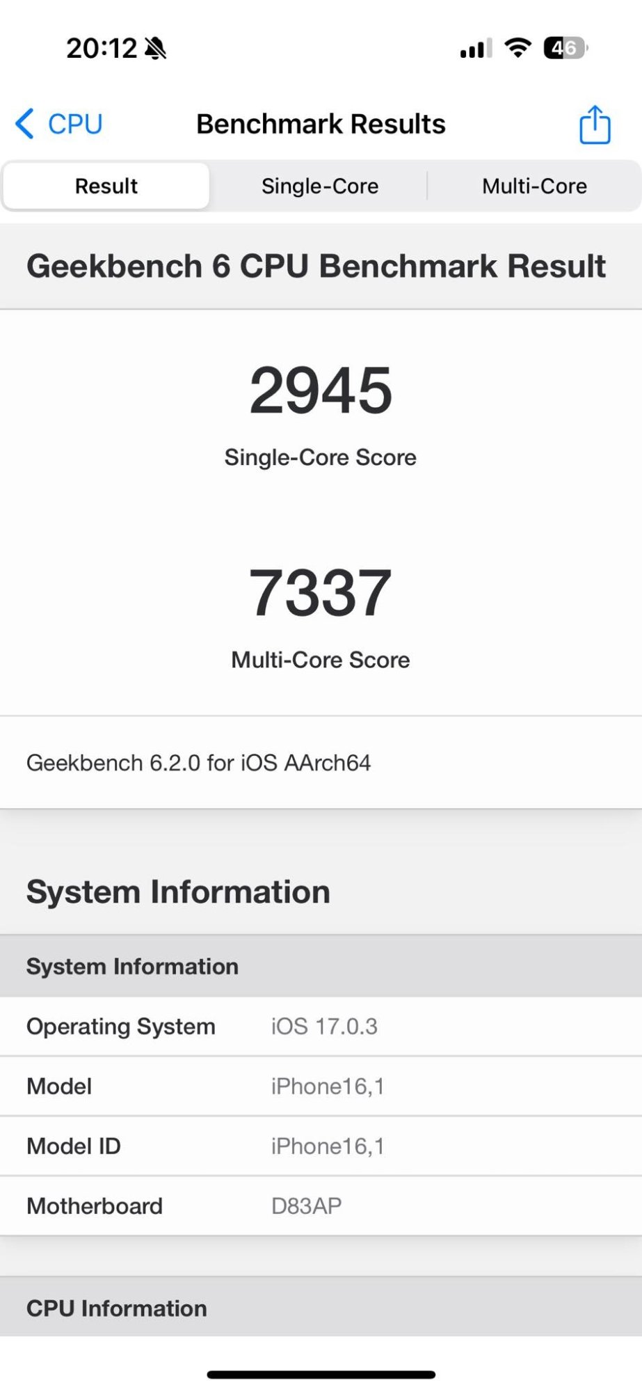 People need to stop diving into these Geekbench runs just after installing the new update. Give it time to settle or re-index then run it after a few hours later.View attachment 2288558
