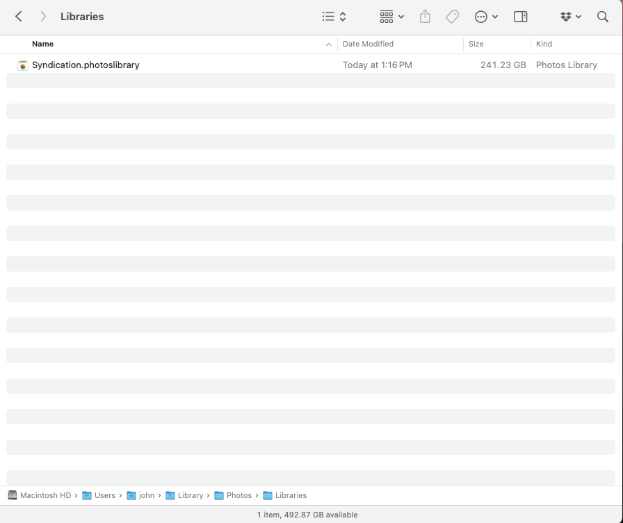 To answer your query, I have a similar .photoslibrary entry in that directory but mine is only 3.4 MB.What about deleted photos appearing on my Mac? My gut tells me these deleted photos are still stored in iCloud. I have images appearing that I deleted two Macs ago. These images are coming in on my M3 Max MacBook Pro. Does anyone else have this same Syndication.photolibrary?