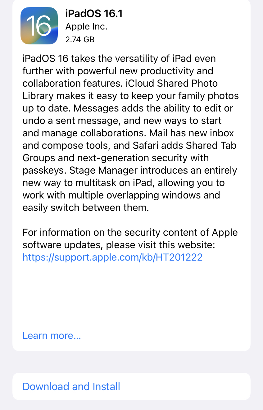 The iPadOS 16.1 update can be downloaded on eligible iPads over-the-air by going to Settings > General > Software Update.