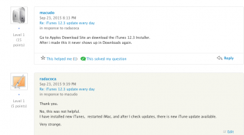 Just got suggestions on Apple discusions to instal new iTunes, I have done it, restarted iMac and when I check updates, there is again new update for iTunes.Very strange