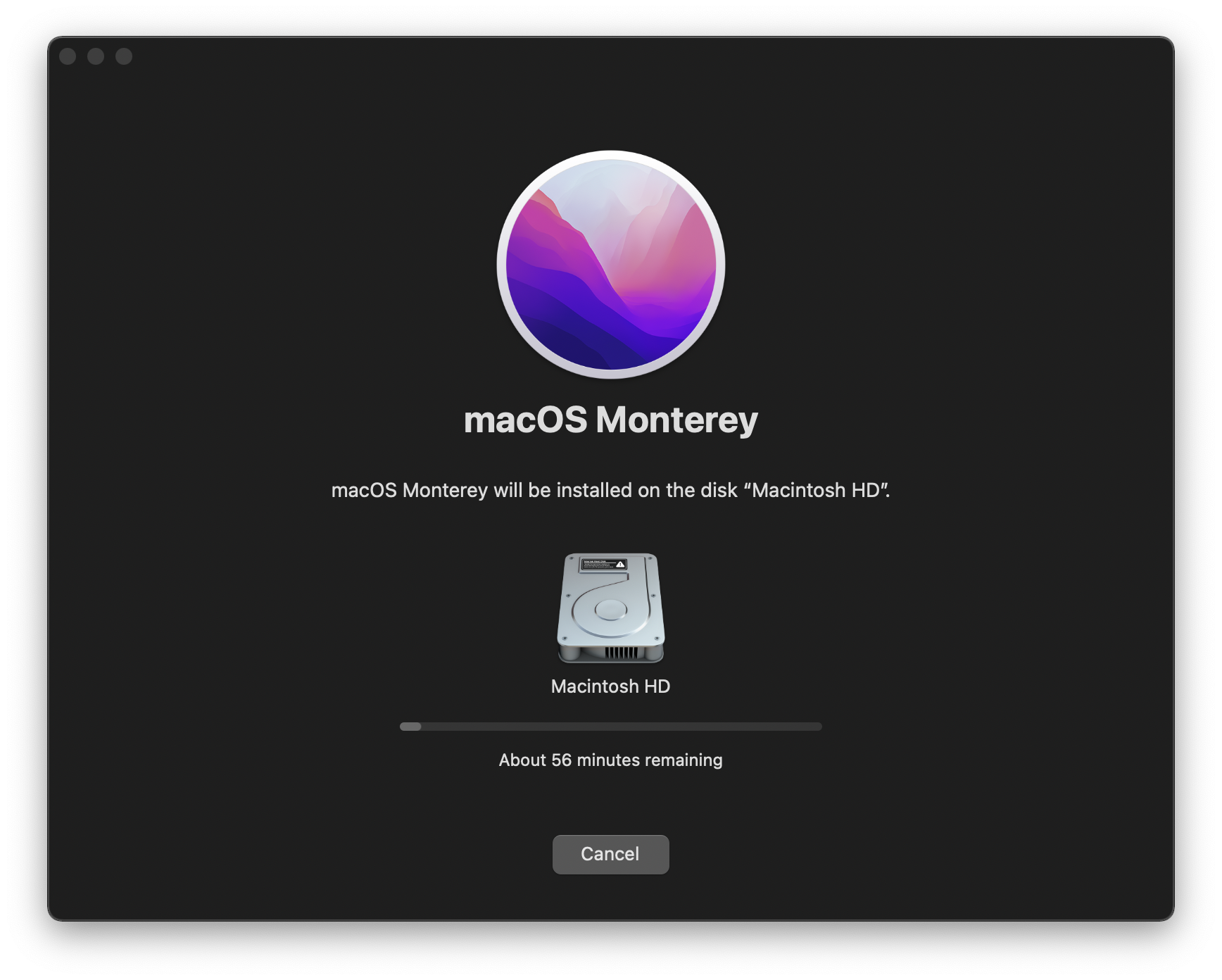 Monteray downloaded. installing. MB ProI have Mac Air M1 and its showing me 11.6.1