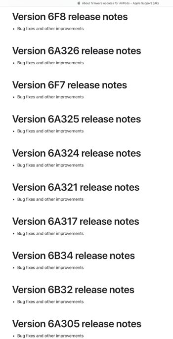 No different than EVERY app in the App Store. Apple should enforce devs (and themselves) to document/publish changes. Example, Amazon app changes…You know that concept called Bull**** Jobs? I think whoever at Apple maintains the AirPods release notes page may have one.![]()