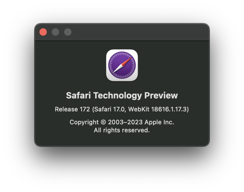 The current Safari Technology Preview release is version 16.4 and is compatible with machines running macOS Ventura.