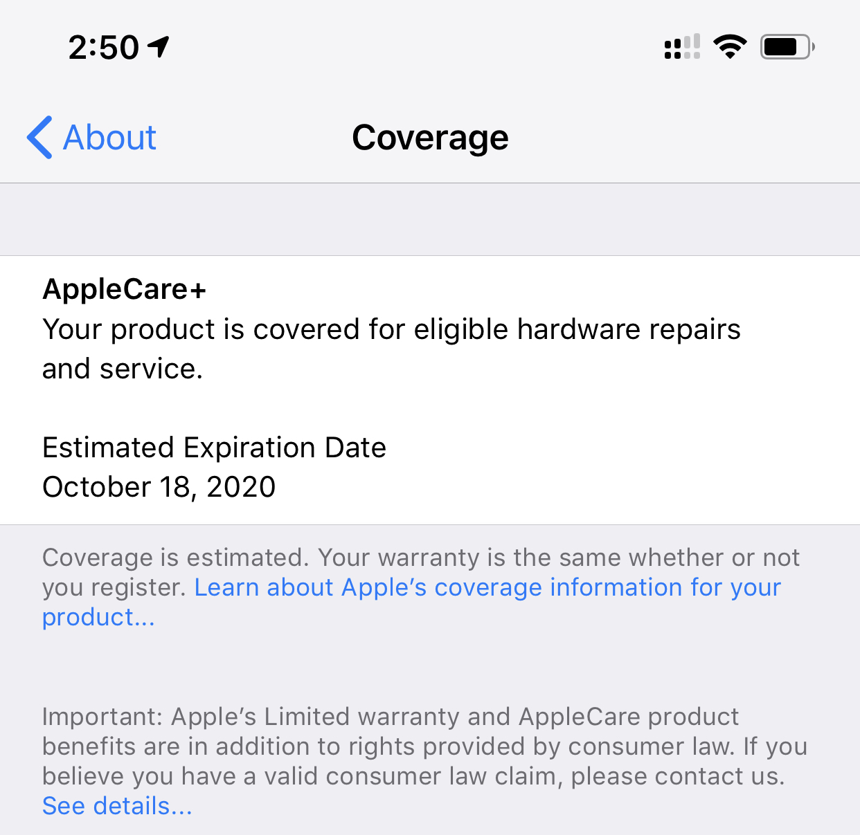 That’s really cool. My AppleCare is not showing up for whatever reason.The About menu now displays if you're covered by AppleCare+ and what the expiration date of that coverage is. Small thing, but neat nonetheless.