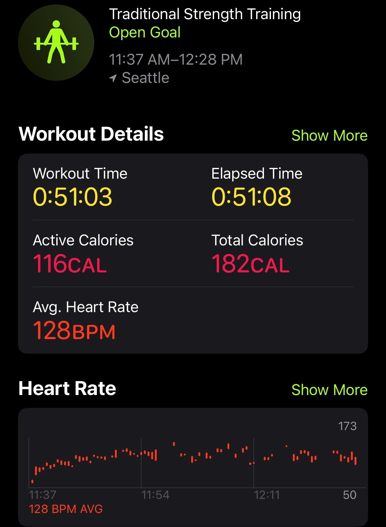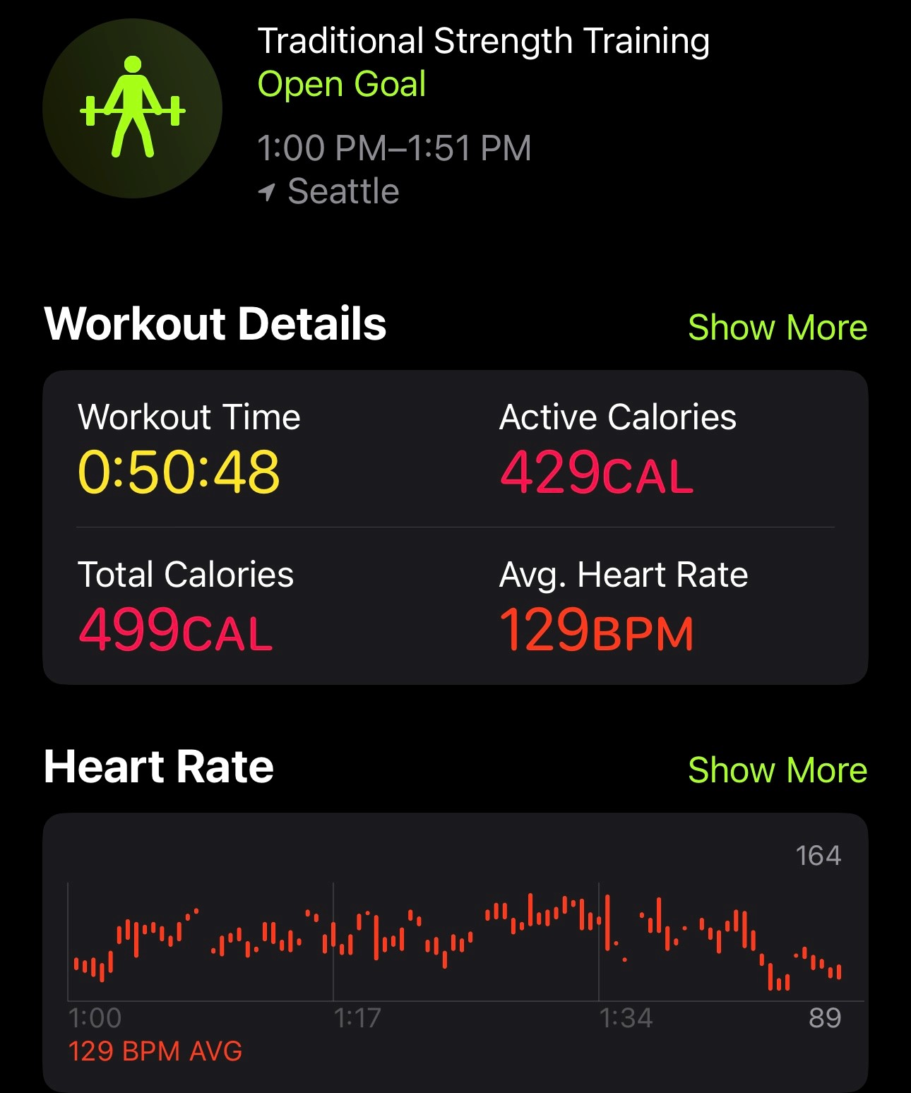 Update: I did go on a walk and it looks like the results of that were "normal" so now it's either the strength training workout that is off, or the results were a one-off.