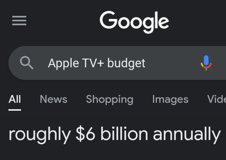 And, I think most people would agree, most of Apple's shows and movies are bombs with a few good ones sprinkled in between.