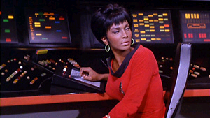 Good memory. I bet you're thinking of the electronic clipboards in the old show. Especially Yeoman Rand, who kept making Kirk sign hers with a stylus. Ahem. But others used them a lot, too, like McCoy, Spock and Uhuru:
