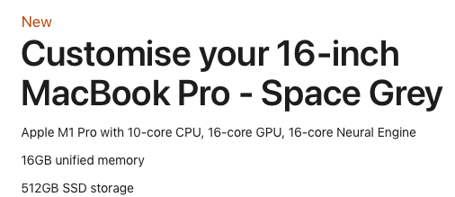I don't know if we can say that for certain anymore. Apple has been doing press release updates far more often recently than they used to. I'm thinking it's a trend where only big pertinent changes will be released during an event. I really don't think this update is going to be worthy of an event, or maybe they will have a pre-recorded video they release with it to cover the updates. But I'm hoping they do release it tomorrow. I've been waiting patiently for the next update.The US site www.apple.com shows that but sorry to say that it's not new. Even back in November you could still see that. Just go to web.archive.org and paste the URL https://www.apple.com/shop/buy-mac/macbook-pro/16-inch-space-gray-10-core-cpu-16-core-gpu-512gb. It looked like that on Nov 10th.