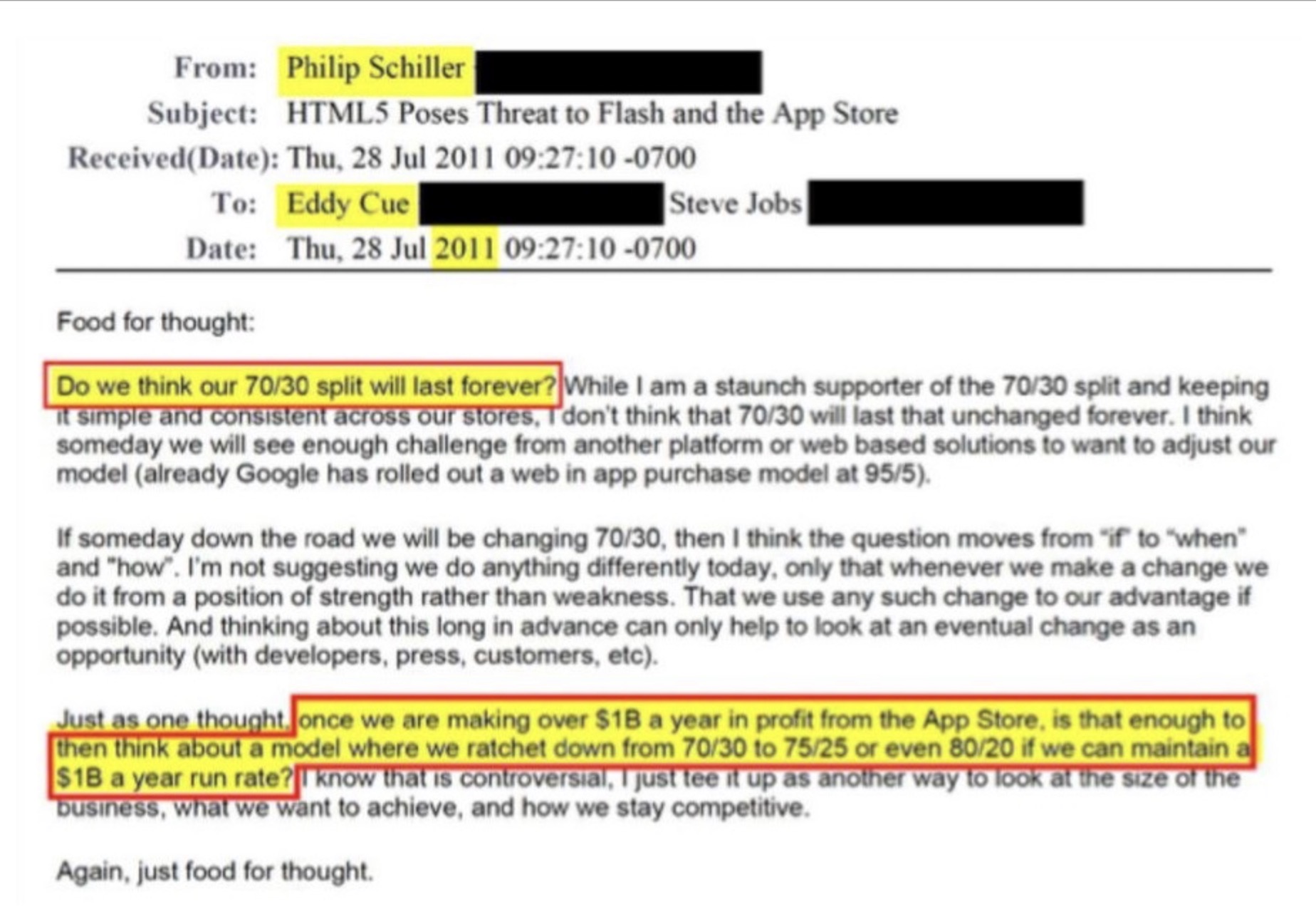 And that shows that he admitted the idea was controversial within Apple. Even so, he was saying a reduction to 25% or maybe 20%. There are people here and on other sites who say that Apple should only charge 5-10%. These individuals probably would even be happy with that fee.One thing we do know is back in 2011 Phil Schiller argued that Apple should reduce the App Store fees once App Store revenues hit $1B.