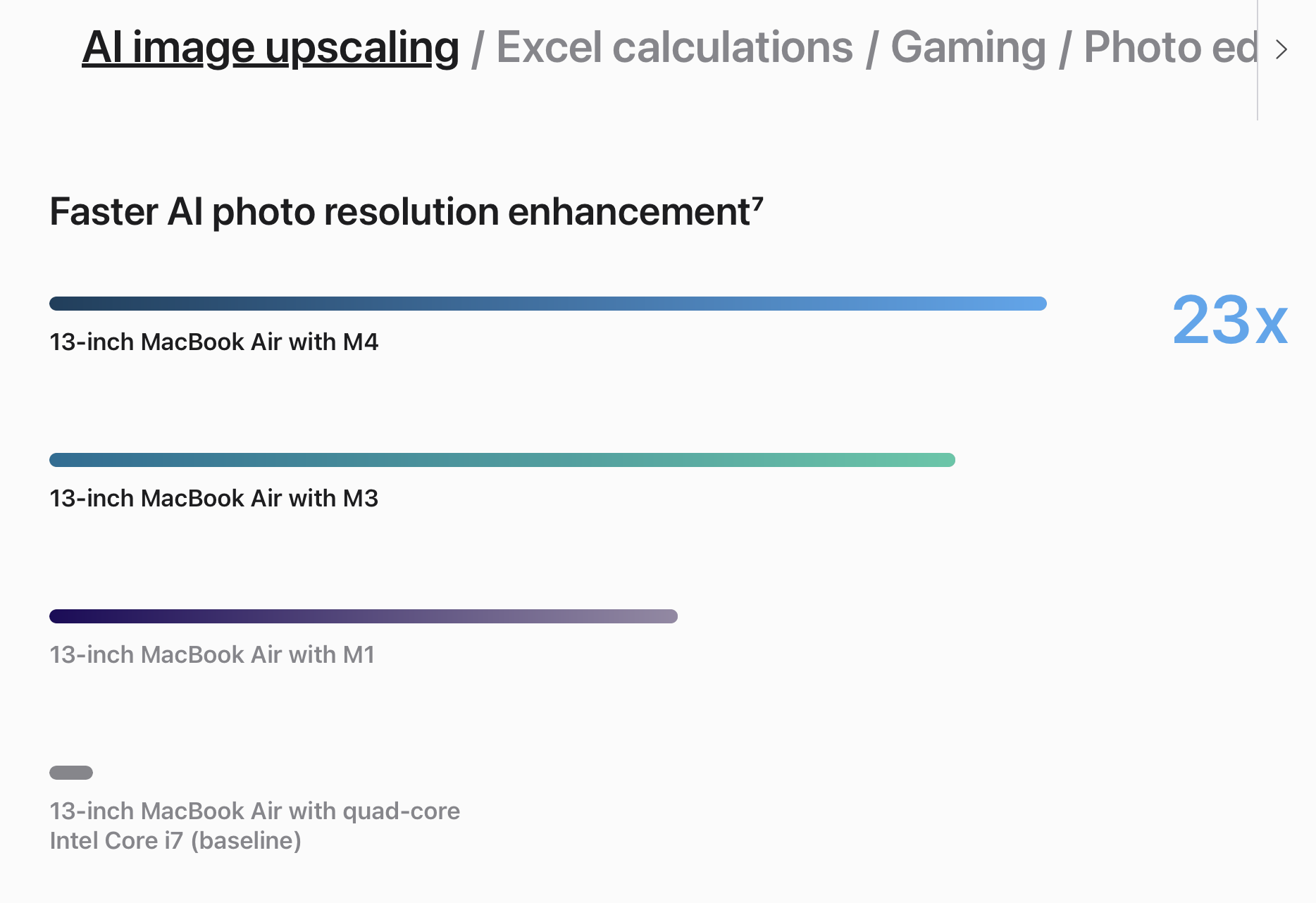 Also, I think this comparison is valid. Current owners of Intel Macs and M1 MacBook Airs are the ones who will buy these new models, not the owners of M2/M3 MBAs.