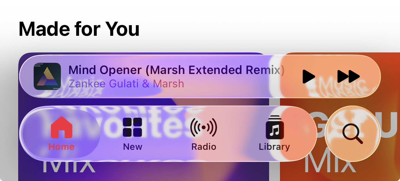 I very much like the look, but appreciate others' opinions on the design. That said, I'd make the artist name darker — the smaller font size should be sufficient to differentiate it from the song title. I'm also strongly in favor of a toggle or slider to adjust the transparency without needing to turn on Reduce Transparency.This is a perfect example for how bad it is to read the music titles - same for Podcasts app. Makes no sense that they have frosted search bar in Messages and Mail and use transparent in Music and Podcasts. Should be the same or the other way around.