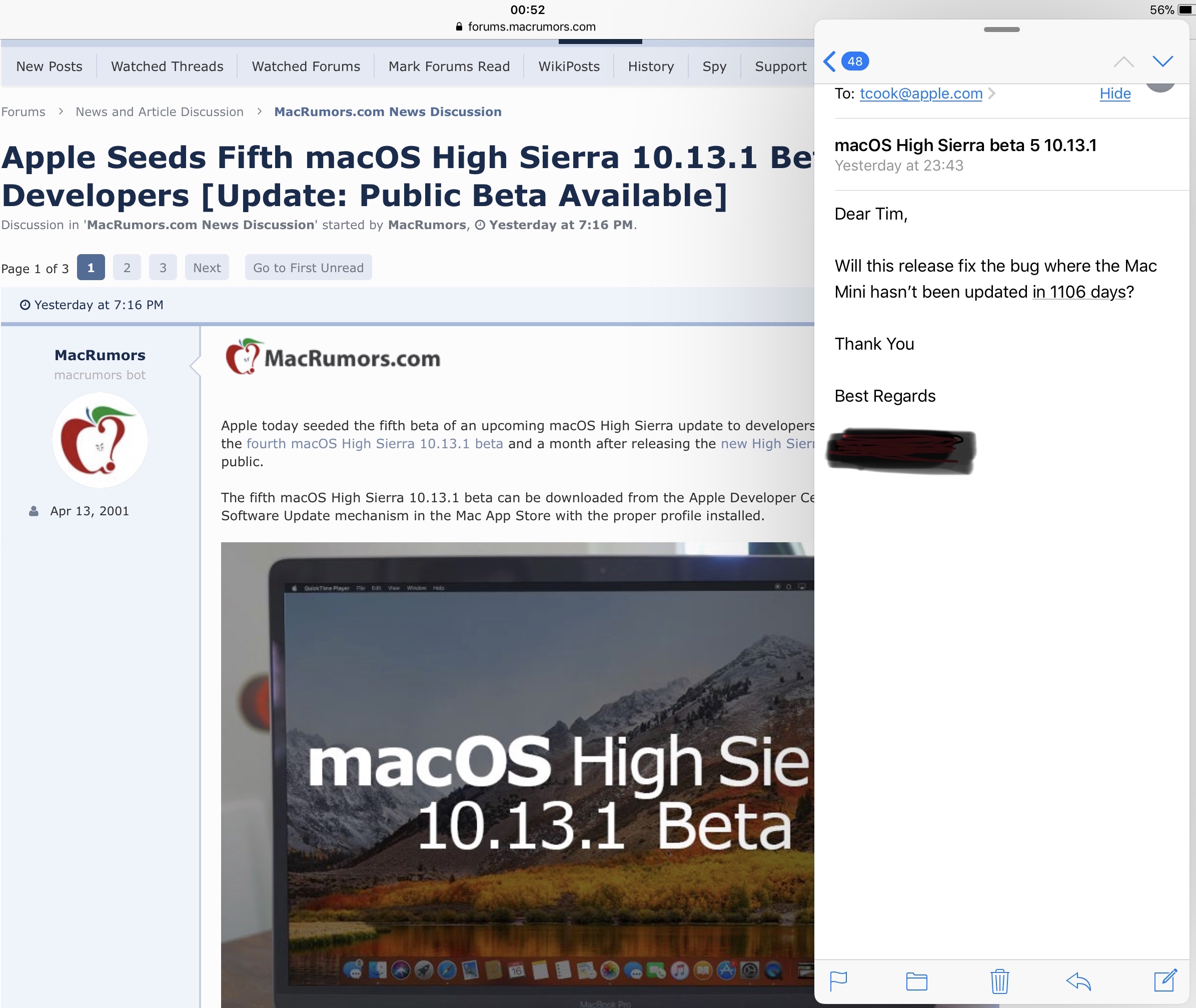 I've been having horrible problems with High Sierra. In 10.13.0, performance was all right, but I was getting hard-locks at least once a day at work. I was desperate for a fix, so I decided to give the 10.13.1 beta a whirl. It's been a nightmare. Graphical performance took a HUGE dive for me. I wasn't experiencing hard-locks anymore, but the performance got so bad that it was affecting my productivity extremely negatively. If I even _thought_ about running anything Chromium-based, it chugged hard.