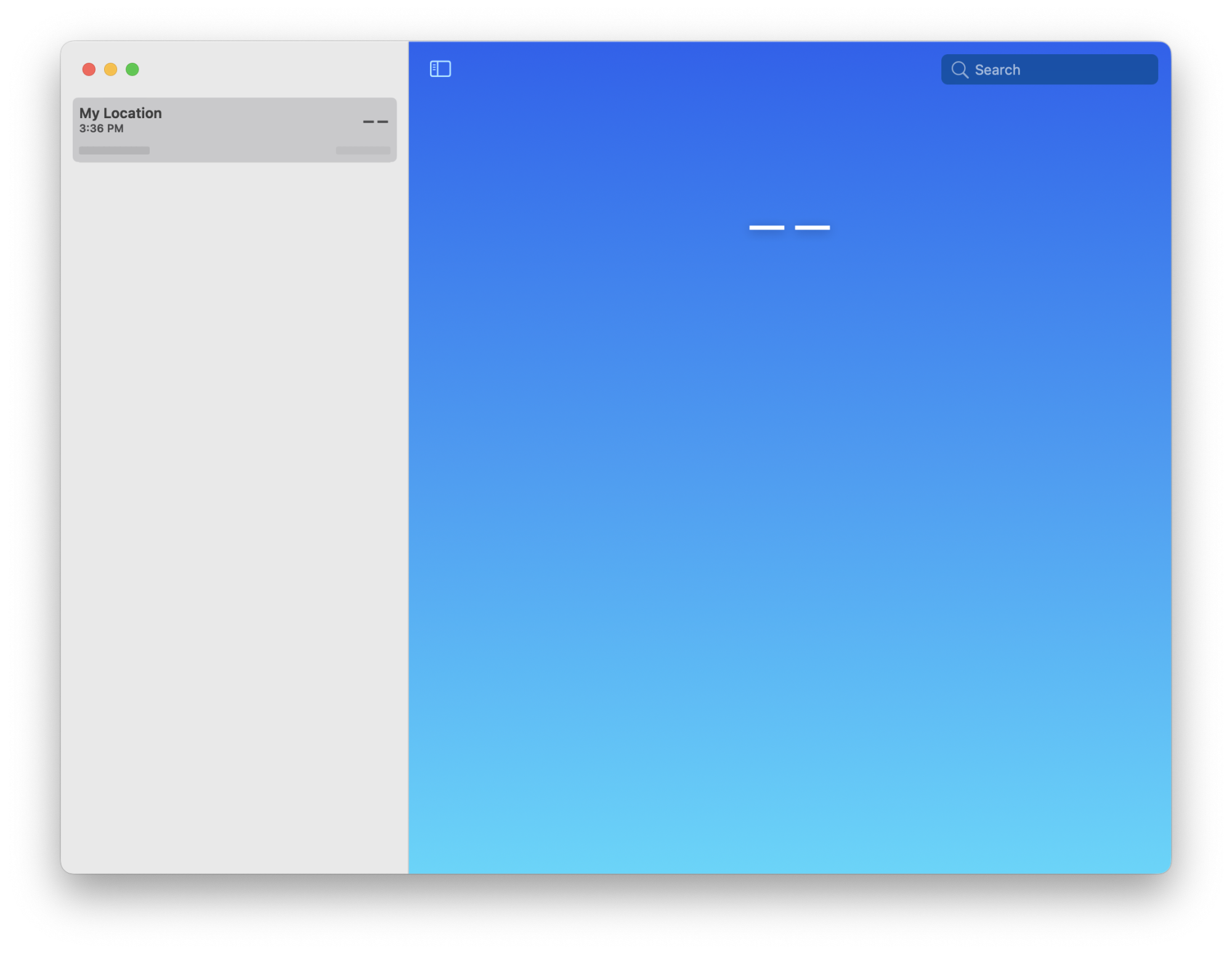 Ok, that sounds right, it's been awhile since I first used this weather app from June 6th. I do like this port of Dark Sky on the Mac.No, it can access the server just fine if I manually enter a location.