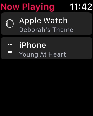 The Now Playing function when playing will indicate “iPhone” when that is the source. At 6-7AM his morning suffering all night from insomnia I noticed my Apple Watch S2 Nike+ shower Now Playing. iTunes on my iPhone while browsing was running but NOT playing music. Closed iTunes on iPhone 7 presses the crown on Nike+ and relaunched Now Playing and yeah it’s till there.