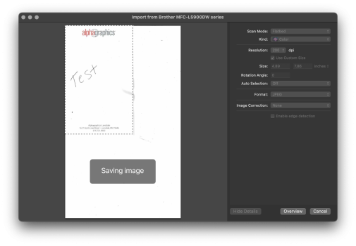 Reinstalled the scanner driver and it now works.Network scanning isn't working for me. It just hangs on Saving Image. Could be a driver thing I suppose, but this worked previously.