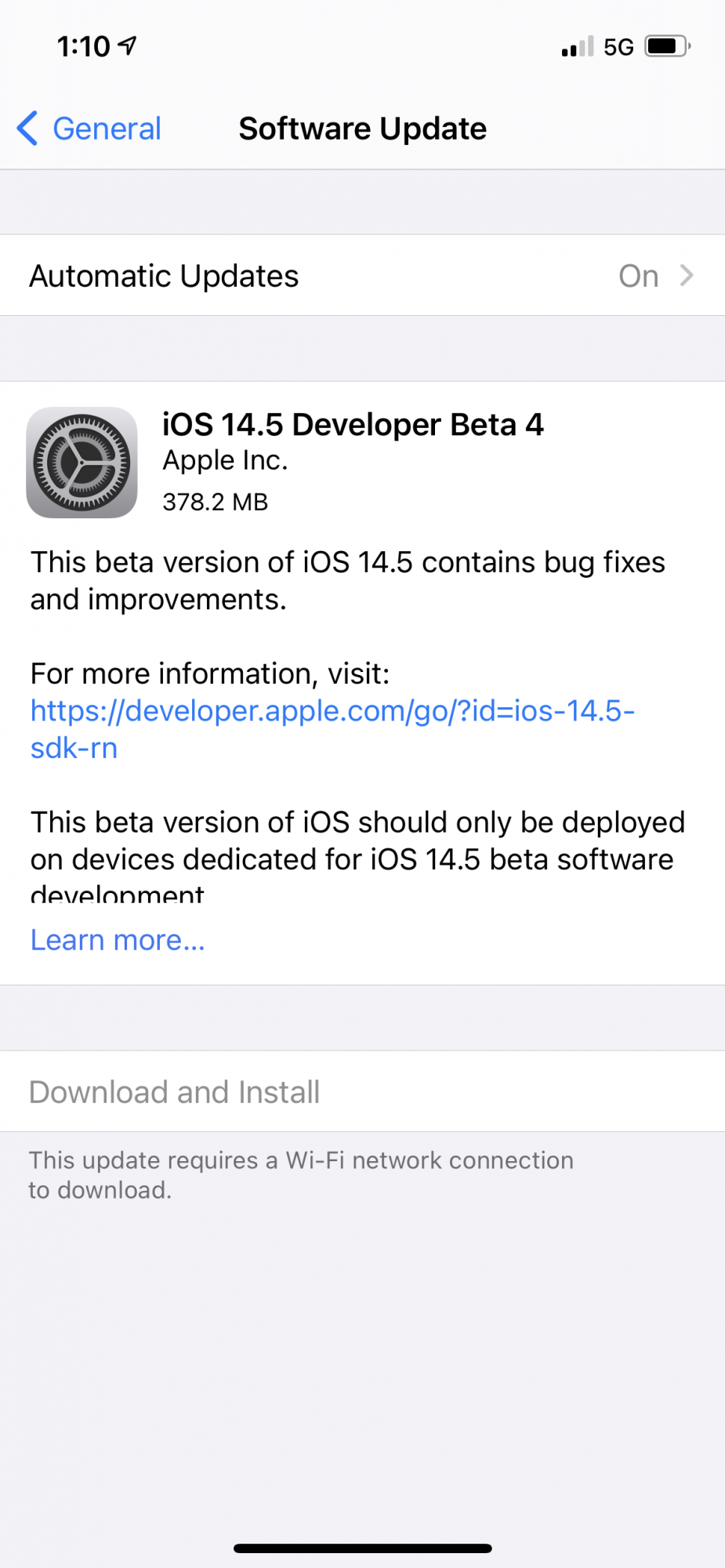 iOS and iPadOS 14.5 can be downloaded through the Apple Developer Center or over the air after the proper profile has been installed on an iPhone or iPad.
