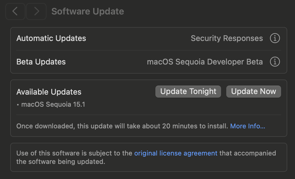Registered developers can opt-in to the macOS Sequoia beta through the Software Update section of the System Settings app. An Apple ID associated with an Apple Developer account is required to get the beta.