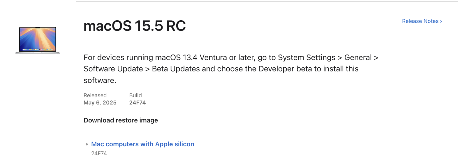 Article Link: Apple Seeds macOS Sequoia 15.5 Release Candidate